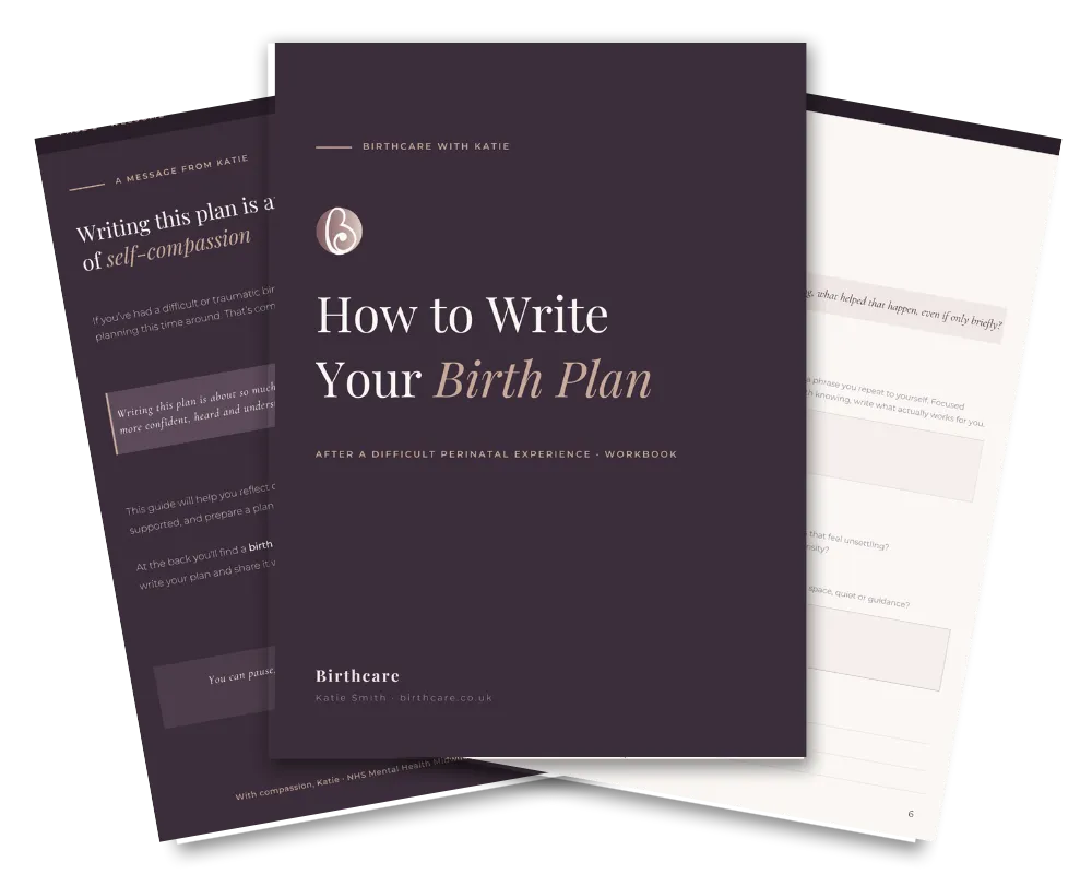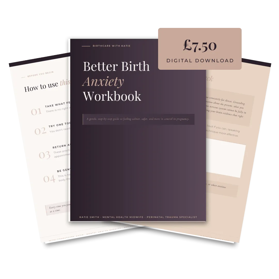 A free 16-page trauma-informed workbook with a printable template you can hand directly to your care team. Simple, guided steps, written by someone who knows exactly what your midwife needs to see.